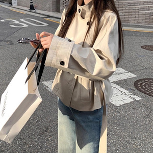 2025早秋新款韩系短款风衣女英伦风立领收腰小个子休闲短外套