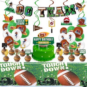 亚马逊爆款超级碗主题派对橄榄球拉旗吊旋挂饰蛋糕插排气球用品