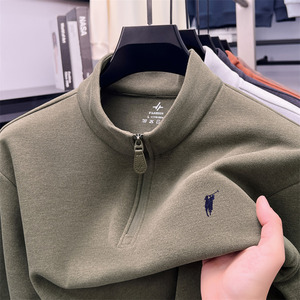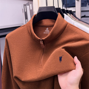 保罗长袖卫衣男秋冬新款中年男士立领加厚帅气桑蚕丝刺绣打底上衣