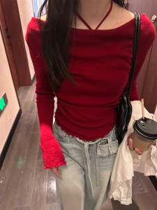 广州黄峥纯欲风设计感洋气时尚挂脖毛针织衫女秋季显瘦软糯530048