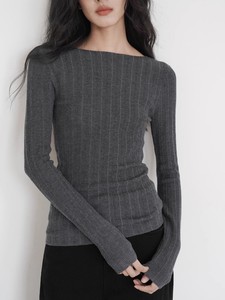 灰色针织打底衫女2025秋季新款微透修身小众毛衣上衣