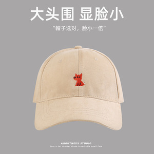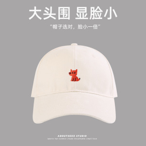 大头围帽子女鸭舌帽2025新款显脸小棒球帽加大加深狐狸刺绣遮阳帽