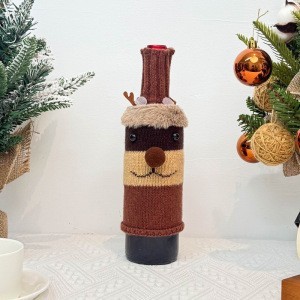 圣诞酒瓶套圣诞节装饰卡通针织老人雪人酒套节日餐厅布置装扮