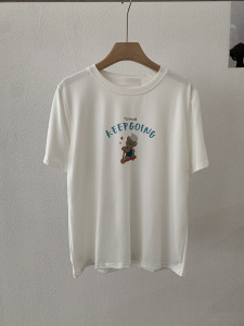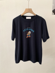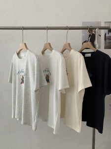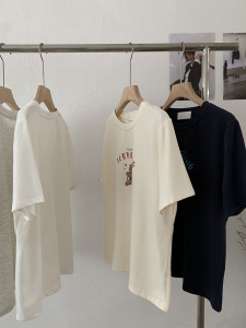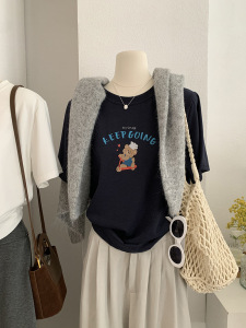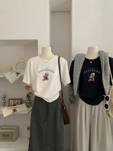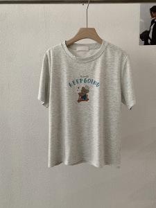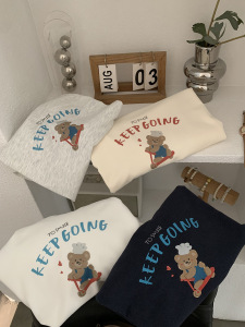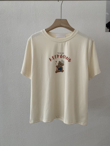 欧玛莱 磨毛卡通小熊印花圆领短袖T恤女2025秋季新款韩版百搭4559