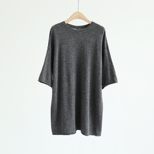 秋冬韩系曼陀罗时髦極簡圆领宽松慵懒针织衫七分袖柔软套头上衣女