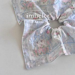 甜妹风猫咪玫瑰印花刺绣方巾~ins温柔手作卡通大肠发圈发绳新款女