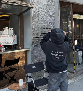 高版本 AC家1996洗水做旧脏脏渐变连帽卫衣男女百搭宽松运动帽衫