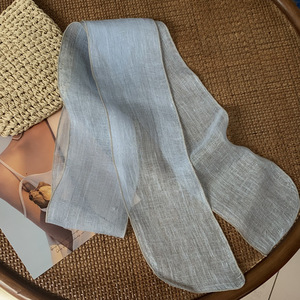 热销时尚亚麻纯色领巾秋季新款轻薄透气时尚百搭系脖子领巾小围巾