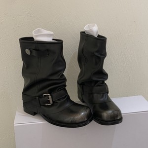 MuXuan~4cm西部牛仔堆堆靴女2025新款褶皱裤管短靴擦色复古骑士靴
