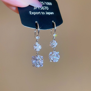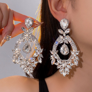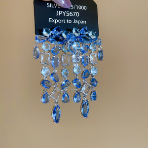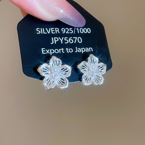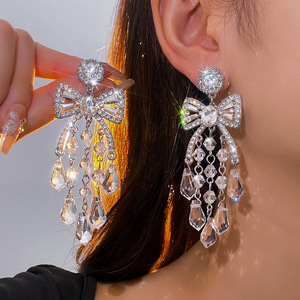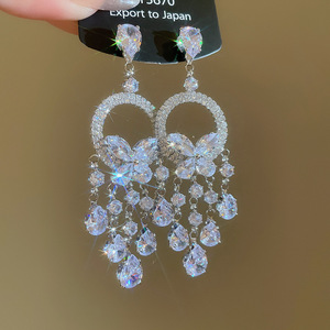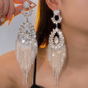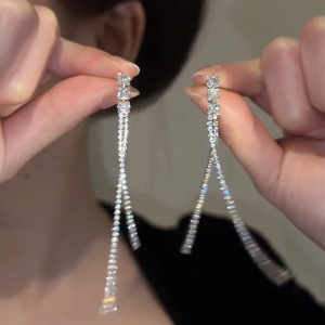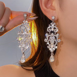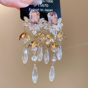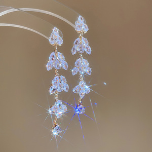 银针镶钻花朵水滴流苏耳环轻奢高级感气质耳钉夸张设计感小众耳饰