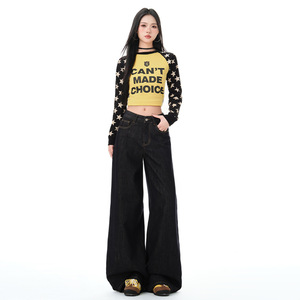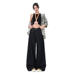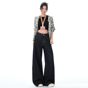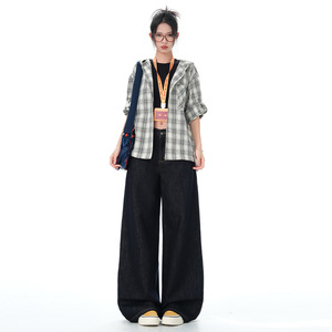 美式复古街头直筒牛仔裤女秋季新款宽松垂感显瘦百搭拖地阔腿裤潮