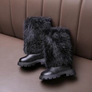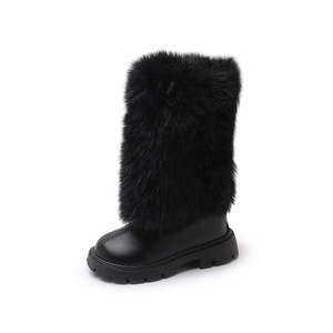 女童外贸皮靴2025秋冬新款时尚洋气长筒靴毛毛口软底高筒靴时装靴