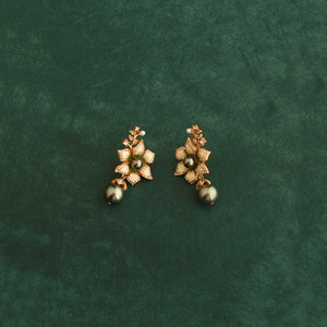 复古重工琉璃珍珠镶钻耳钉小众设计轻奢精致花卉女士高档耳饰饰品