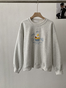 欧玛莱 毛巾绣蛋糕刺绣字母圆领宽松长袖休闲百搭套头卫衣女 4557