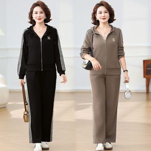 时尚奶茶色套装女秋装妈妈休闲外套中老年女装2025热卖春秋两件套