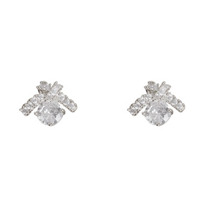 银色-蝴蝶结锆石耳钉(加厚真金电镀)