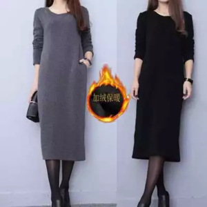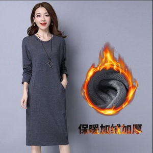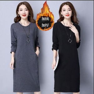 加肥加大码200斤胖mm秋冬装连衣裙女宽松加绒加厚显瘦长款打底衫