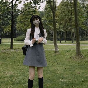 盐系轻熟两件套装女秋冬韩剧小香无袖背心连衣裙搭配长袖系带衬衫