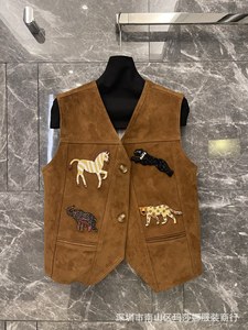 25秋冬新款进口羊皮反绒面订珠高级感真皮马甲修身女马甲皮草
