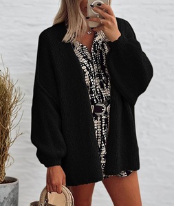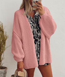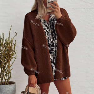 大量现货2025欧美跨境秋冬新款针织开衫宽松纯色休闲大码毛衣外套