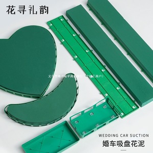 婚车花泥带吸盘大v字形爱心型鲜花车头车模具半月牙长条底座磨具