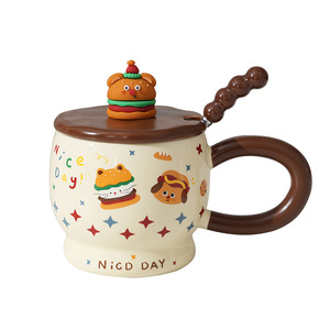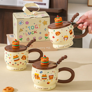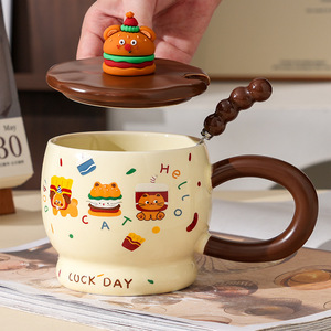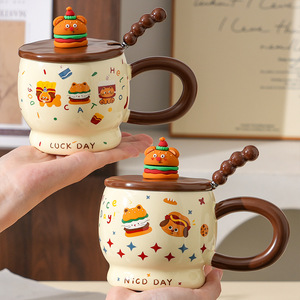 新款汉堡薯条陶瓷杯带盖勺创意个性马克杯学生桌面办公早餐咖啡杯
