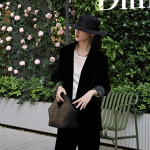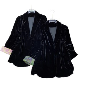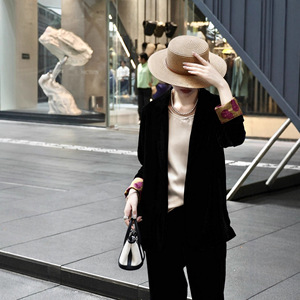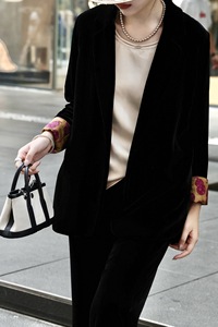 南油女装2025早秋爆款真丝丝绒复古时髦拼接袖口撞色中式西装外套