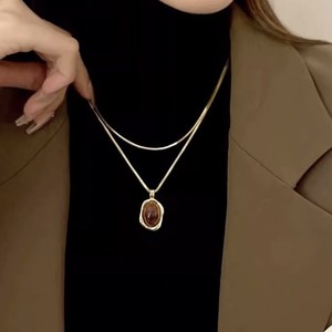 爆款琥珀叠戴金色毛衣项链女春天配饰轻奢高级感小众虎眼石毛衣链