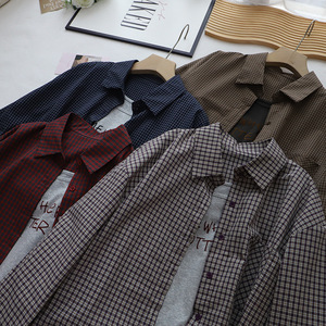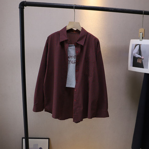 [比正]2025秋季新韩版字母印花吊带背心格子长袖中长款衬衫女4818