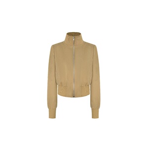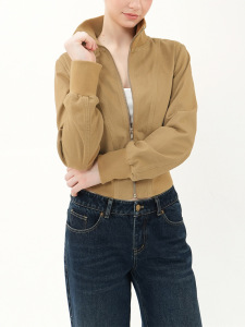 辣妹高级感复古短款水洗卡其色夹克罗纹上衣简约初秋小众设计外套