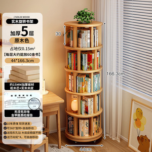 实木360°旋转书架一体靠墙可移动床头书柜儿童实木储物柜置物架