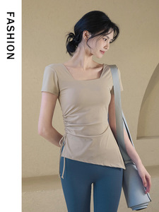 带胸垫瑜伽套装女夏季户外跑步运动速干上衣短袖普拉提训练健身服
