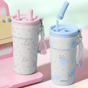 网红新款卡通真空保温杯大容量学生户外便携车载保冷冰霸吸管水杯