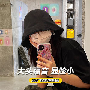 大头围女士渔夫帽遮脸显脸小水桶帽日系百搭素颜盆帽春秋遮阳帽子