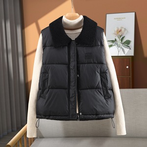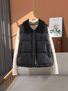 棉马甲女短款2025秋冬拼接羊羔毛绒翻领学生宽松保暖棉坎肩棉马夹