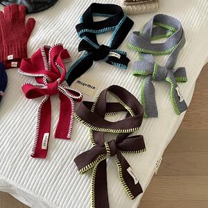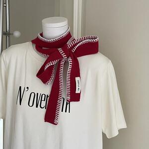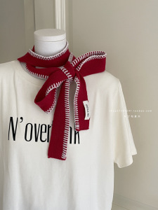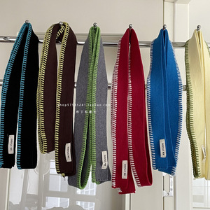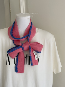 设计师款 | 超美撞色锁边窄版装饰小围巾秋冬季百搭纯色长条围脖