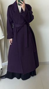 新款带围巾双面羊毛大衣 长款阔版腰带款式加厚保暖羊绒毛呢外套