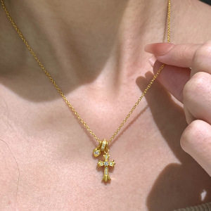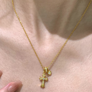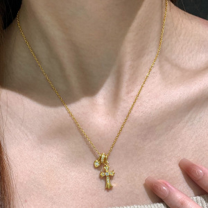 小红书爆款十字架爱心跑环项链轻奢高级感小众设计锁骨链一件代发