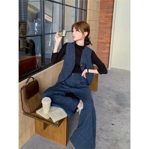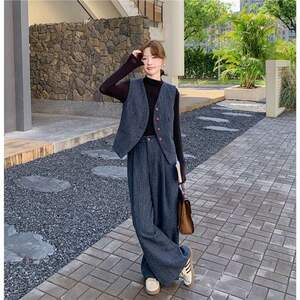 一整套穿搭叠穿马甲套装女秋季新款百搭高级感气质高腰阔腿长裤