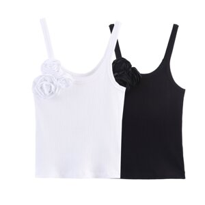PB&ZA女装2025年秋季新款 辣妹风花朵饰罗纹百搭背心上衣5644859