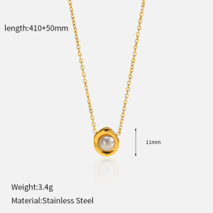 欧美跨境轻奢珍珠锁骨链百搭高级感钛钢项链电镀18K金不锈钢项链