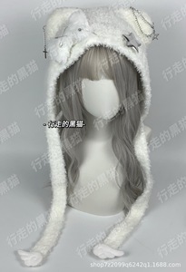 可爱米奇小手套头帽秋冬甜美卡通搞怪拍照毛线帽子显脸小针织冷帽