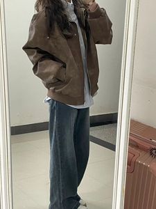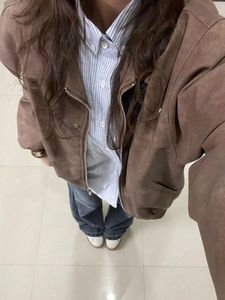 美拉德美式复古高级感棕色pu皮衣外套女春秋新款百搭街头潮牌夹克