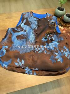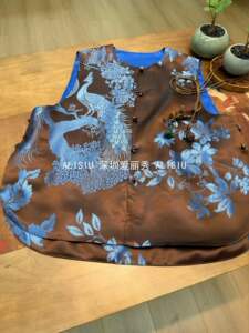 深圳南油真丝老缎马甲真丝蜀锦拼醋酸提花双面穿新中式国风唐装盘