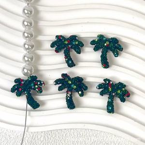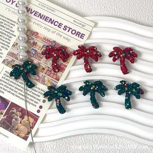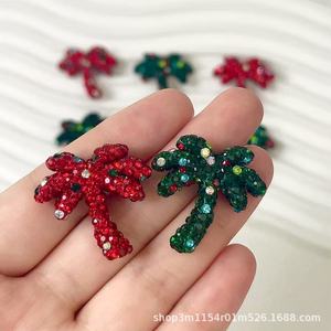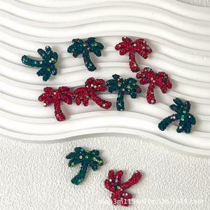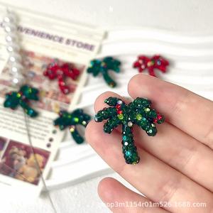 圣诞红绿彩钻配色椰子树陶泥直孔DIY串珠手机链包链车挂饰品配件