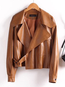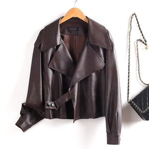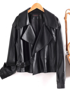 海宁皮衣女25新款春秋机车韩版女士皮夹克宽松休闲翻领皮外套505