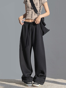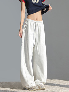 2025秋季新款高腰宽松粉色垂感拖地直筒慵懒休闲美式卫裤阔腿裤