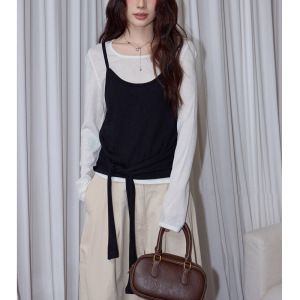 休闲韩系慵懒松弛感上衣女早秋长袖T恤气质针织衫两件套打底衫潮