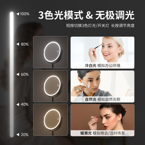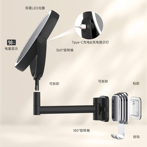 浴室化妆镜壁挂折叠镜子酒店免打孔双面带灯放大镜led梳妆美容镜