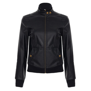 欧美甜酷风长袖上衣新款设计感帅气立领夹克潮流个性皮革外套女